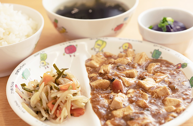 安心・安全な給食の提供はもちろんのこと、『おいしく楽しく』をモットーに、様々な素材をバランス良くとり入れた飽きのこない献立作りを大切に。季節感のある料理、行事食などバラエティーに富んだ給食が3Spoonの魅力です。
